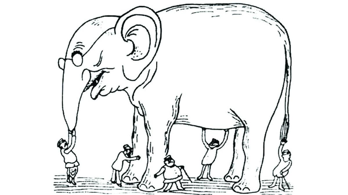 Venkatesh says, “Gandhi is so recognizable with his spectacles and walking stick that even a few imaginative strokes are enough for most people and even children to understand who is being portrayed.”