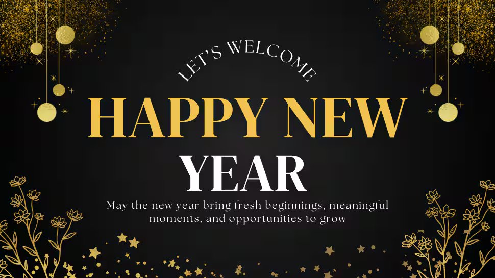 Adding to the festive atmosphere, two gold and white striped party poppers placed in the bottom center opened, releasing purple and gold streamers. Tiny stars and colorful confetti are scattered throughout the design, creating the feel of a midnight celebration full of sparkle and happiness.