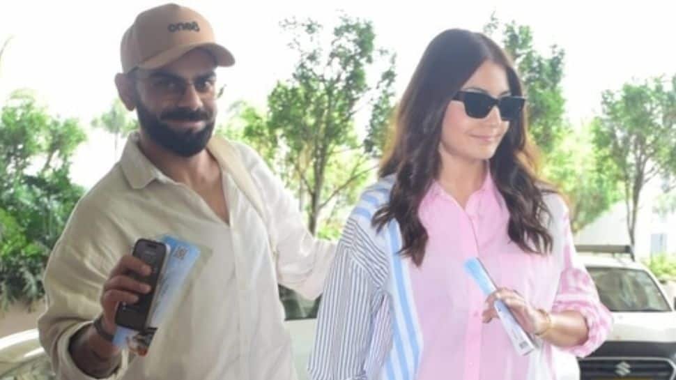 Virat wore a beige shirt and matching pants, while Anushka looked calm to Uber in a striped pink and blue shirt and baggy jeans.