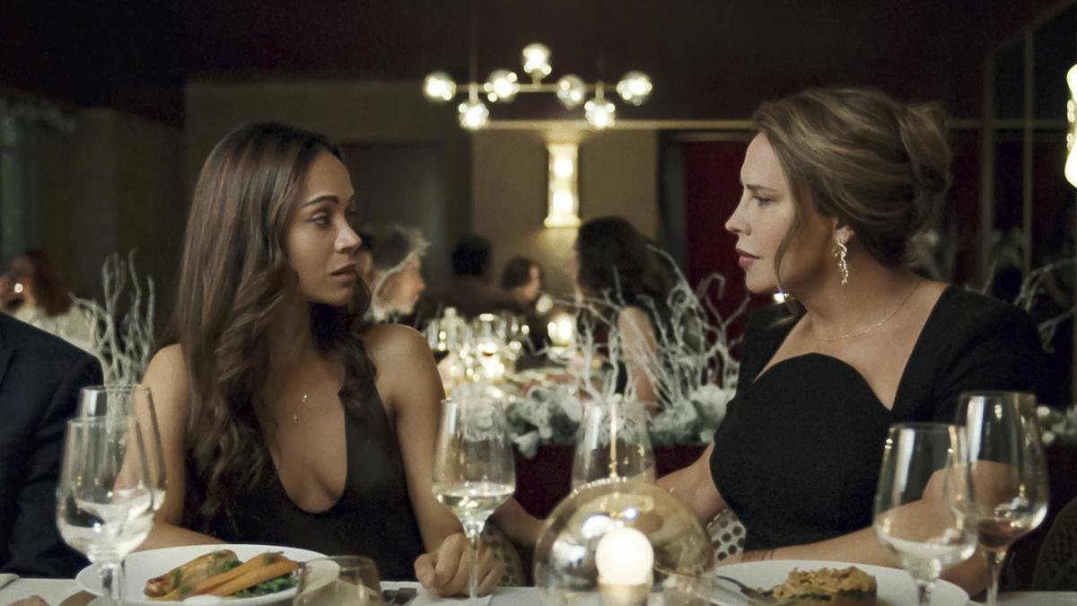 The image released by Netflix shows Carla Sophia Gaskon, Right, and Zo Saladana in a scene of ‘Emilia Perez’. Photo Credit: Shanna Besan